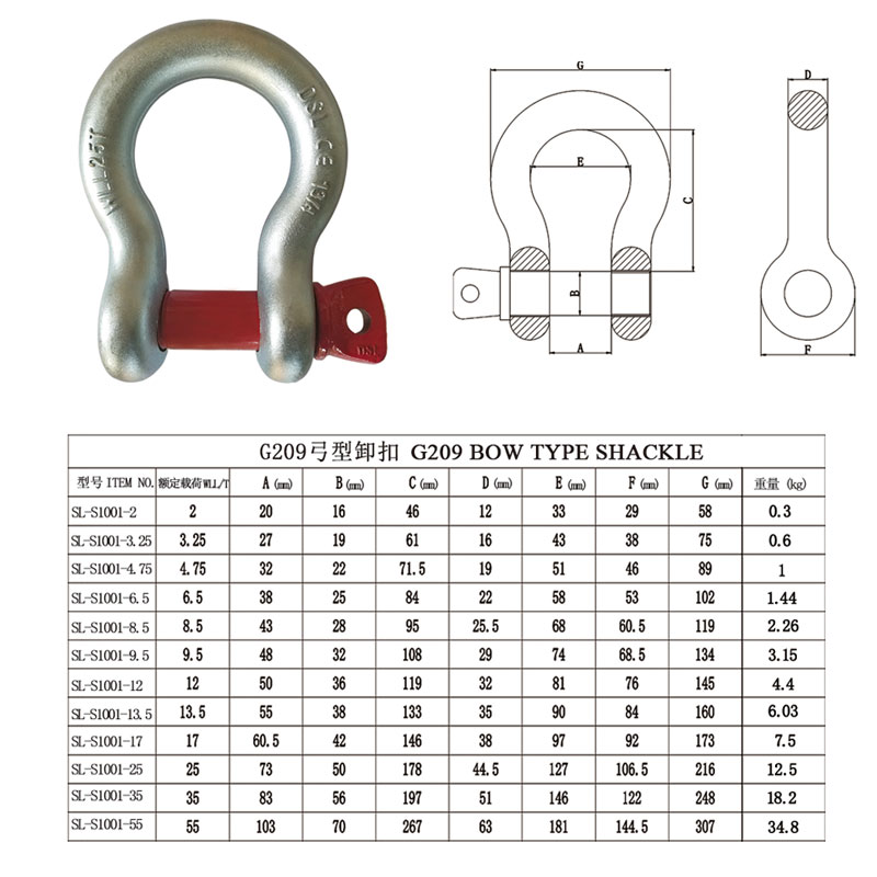 連接環也稱卸扣,是機械工程中常用的連接器材。卸扣通常稱作連接環,是鋼絲繩之間、鋼絲繩與車體之間、鋼絲繩與滑輪之間、剛性牽引架與車體之間的必要連接器材。成華弓形卸扣是用于吊裝、牽引的一種連接件,因其形狀與弓箭相似故被稱為弓形卸扣。